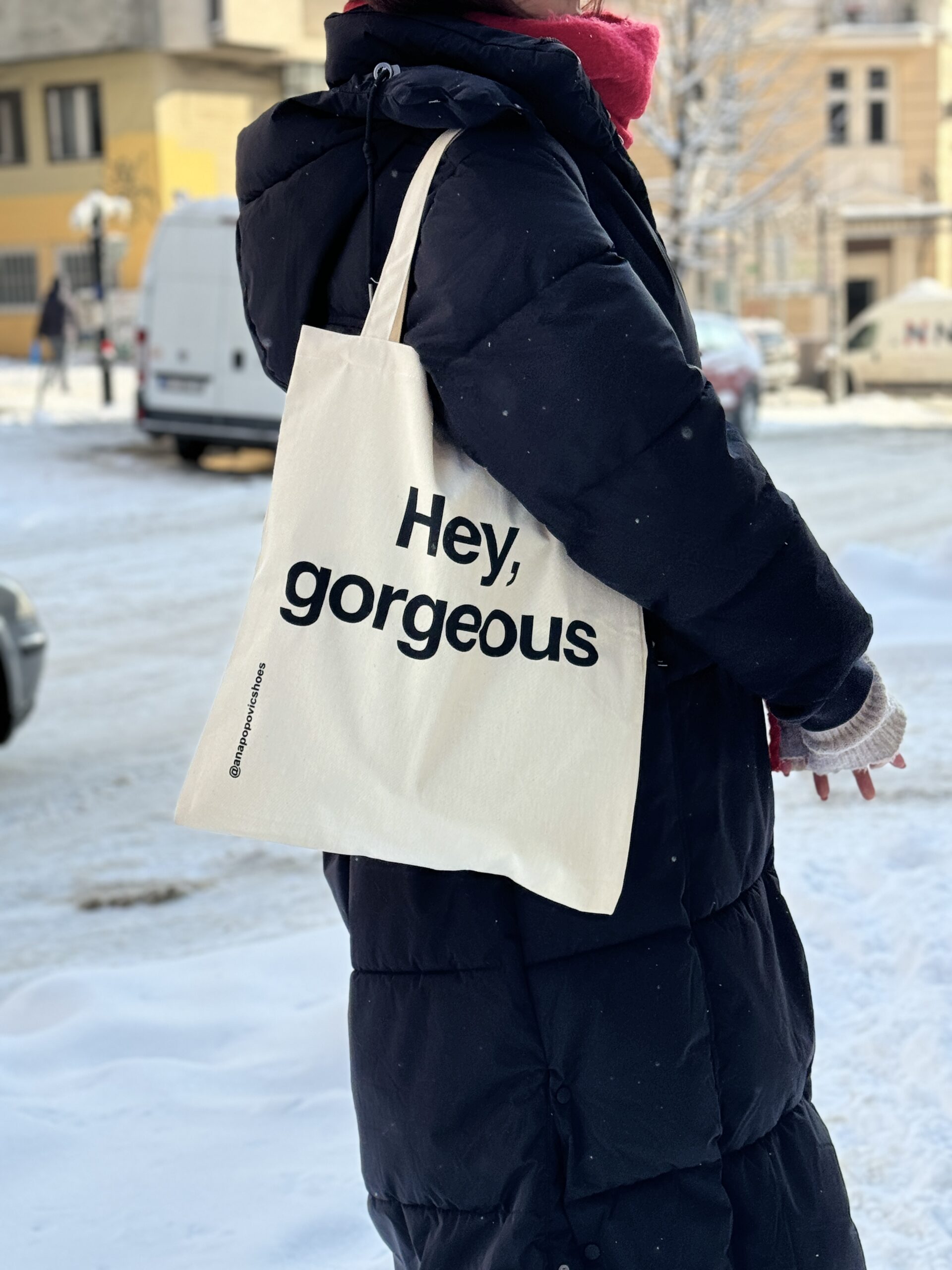 Pamučni platneni ceger sa sloganom „Hey, gorgeous“. Shopper torba od 100% pamuka sa dozom šarma u svakom pokretu. Proizvedeno u Srbiji.